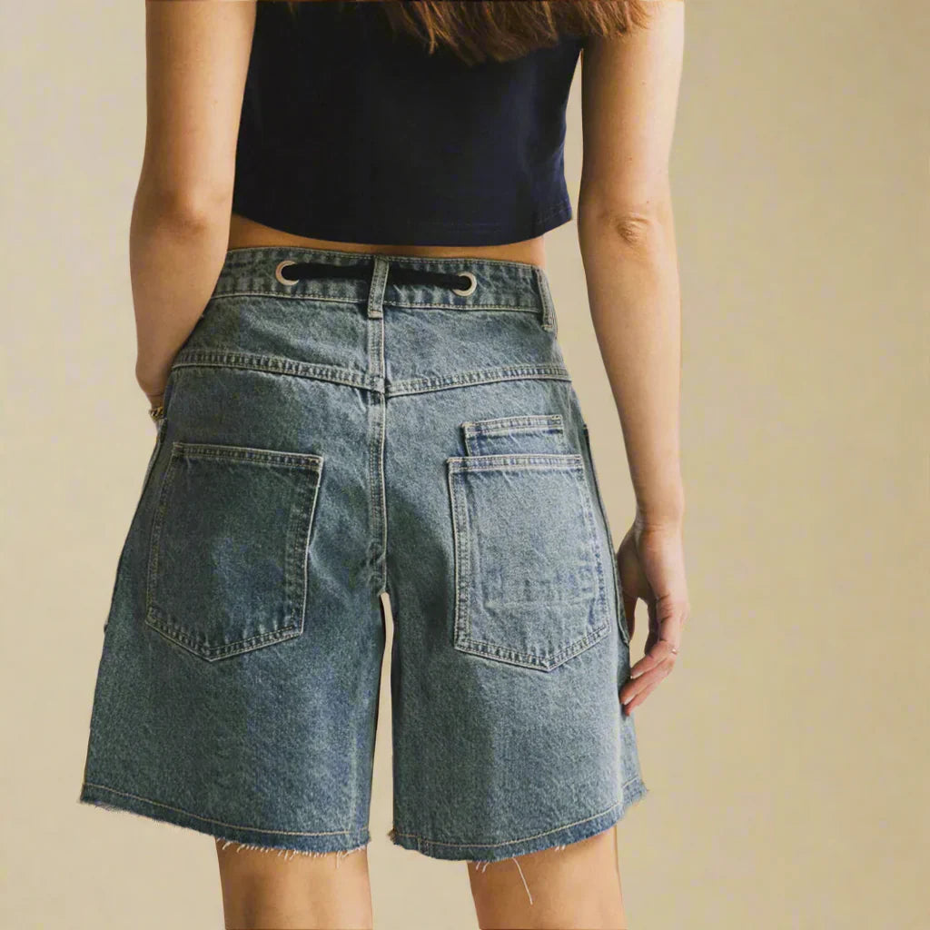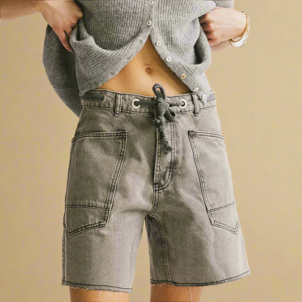 A chunky rope drawstring threaded through hand-burnished brass eyelets nods to nautical heritage, while tonal lace appliqué tracing the oversized patch pockets introduces a discreet touch of artisanal texture. Lightly frayed hems and signature hand-finished top-stitching complete the piece, delivering understated luxury in unmistakable Giorgio Luciano style.